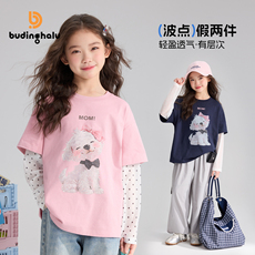 布丁哈鲁夏装女童童装上衣2026夏季短袖儿童波点假两件T恤长袖薄