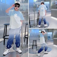 男童夏装儿童潮流渐变套装冰丝上衣防蚊束脚裤两件套中大童休闲装