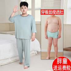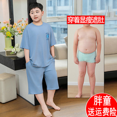 胖男童家居服套装加肥加大夏季中大童冰丝空调服莫代尔睡衣两件套