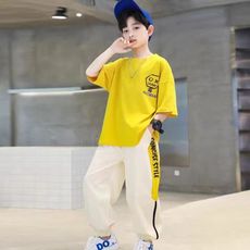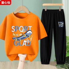 儿童装男童夏装套装2025新款时髦夏季中大童儿童短袖长裤两件套
