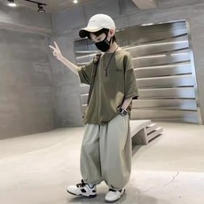 儿童装男童夏装纯棉套装2025新款夏季宽松中大童男孩帅气灯笼裤潮