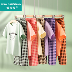 妙当当儿童睡衣男童夏季纯棉女童中大童家居服短袖套装夏天空调服