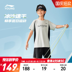 李宁儿童速干运动套装排湿透气2025新款夏季男童装中大童短袖夏装