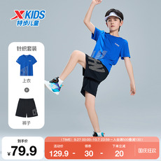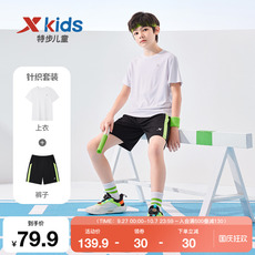 特步童装夏季中大童透气儿童短袖短裤两件套男童网球运动针织套装