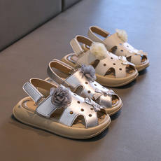 女童凉鞋包头镂空2025夏季儿童韩版洋气公主花朵鱼嘴鞋儿童沙滩鞋