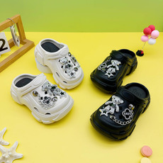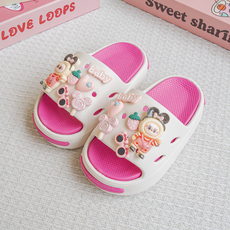 新款男女童亲子拖鞋卡通彩钻小熊EVA洞洞鞋软底防滑包头凉鞋