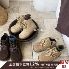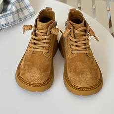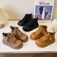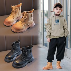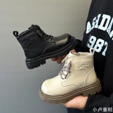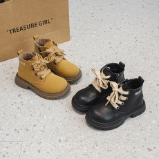 真皮男童鞋儿童马丁短靴子2024春秋新款秋季女童二棉加绒英伦黄靴