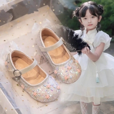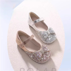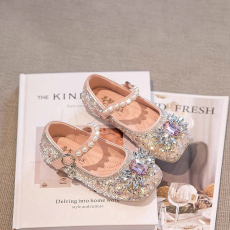 真皮公主鞋女童春秋闪亮水晶鞋2025新款儿童鞋软底女孩礼服小皮鞋