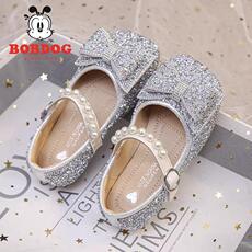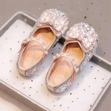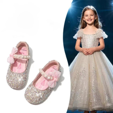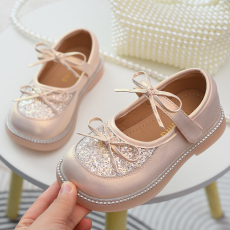 真皮儿童水晶鞋女童公主鞋春秋2025新款软底闪闪鞋小女孩小皮鞋