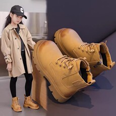 女童马丁靴2024秋季新款儿童靴子真皮男童短靴英伦风大黄靴春秋款