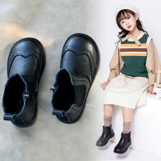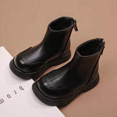 真皮女童靴子2025新款春秋儿童短靴女宝公主童靴冬季鞋子女孩黑色