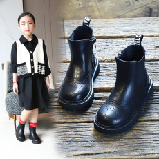 儿童马丁靴女童短靴春秋单靴真皮英伦风黑色小孩靴子男童鞋子潮款