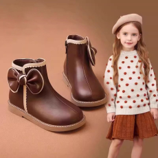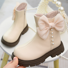 女童短靴真皮公主靴2025春秋新款童鞋加绒二棉靴小女孩蝴蝶结单靴
