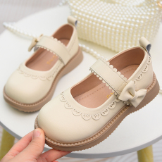 女童小皮鞋儿童真皮公主鞋2025春秋新款童鞋女孩软底蝴蝶结演出鞋