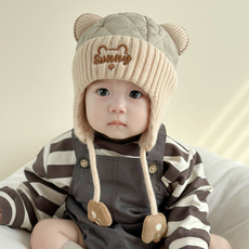 宝宝帽子秋冬季男女童针织毛线套头帽可爱小熊婴幼儿护耳保暖帽冬