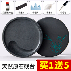 六品堂砚台书法专用可研墨天然原石墨碟歙砚罗纹砚端砚文房墨池砚池墨汁盒带盖初学者学生毛笔套装火锅砚台