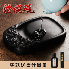 砚台书法专用带盖不干墨端砚天然原石火锅砚台免洗墨盒文房四宝初学者毛笔国画墨蝶墨汁保湿可研墨磨墨砚台