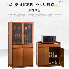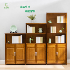 楠竹复古书柜书架现代置物客厅落地置物柜简约带门储物柜书橱促销