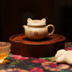 蜜糖紫砂|原矿白玉段泥小猫壶 珐琅彩宝石釉工艺 80ml 内推孔