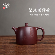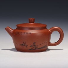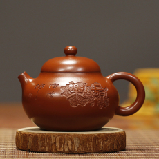 紫砂壶 纯手工刻绘宜兴原矿大红袍扁腹壶家用单壶11412