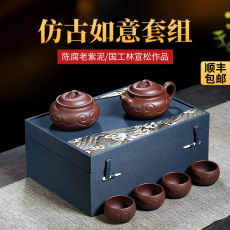宜兴紫砂壶套装原矿纯全手工名家用功夫泡茶壶老紫泥仿古如意套装