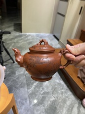 研高毛国强高徒高级工艺美术师杨礼达亲制 扁鼓 原矿紫泥宜兴精品