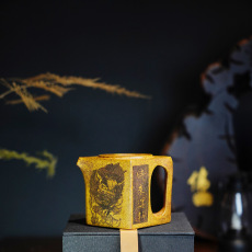 宜兴紫砂壶原矿龙骨金砂四方竹节全手工刻绘家用泡茶壶茶器 300ml