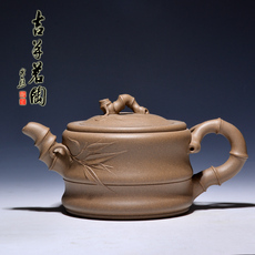 宜兴紫砂壶早期原矿老紫泥手工纪念品壶一品大竹段家用大容量茶具