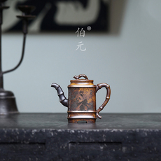 宜兴日式泡茶手工紫砂壶证书全金黄老段泥太湖竹段易包浆刻绘精品