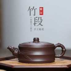 昊陶 竹坞壶 芨品红降坡泥 竹段竹节小壶 手工贴花 宜兴原矿紫砂