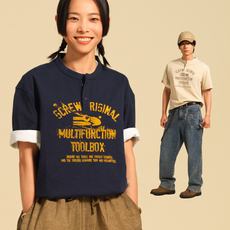 外贸 日单尾货复古日系重磅竹节棉圆领短袖T恤春夏百搭打底衫男女
