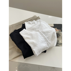 韩国女装简约设计感落肩圆领宽松竹节棉秋冬长袖t恤打底衫