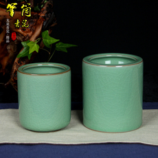 梅林笔庄古风陶瓷毛笔笔筒弟粉青瓷收纳笔筒简约中国风文房四宝用品书法国画练习多功能创意文艺学生桌面摆件