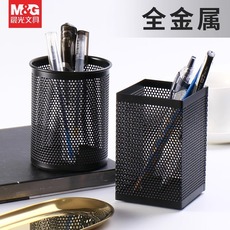 晨光ABT98404金属笔筒铁丝网圆形方形黑色金属结实耐用网状笔筒多功能笔筒笔架桌面收纳盒简约时尚网格笔桶