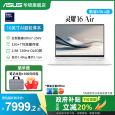 【政府补贴20%】华硕灵耀16 Air 第二代英特尔酷睿Ultra7 2.8KOLED1.1cm高颜值AI超轻薄笔记本电脑学