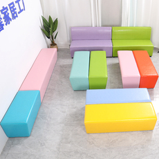 培训机构等候休息区斜角防踢美发店沙发椅幼儿园早教中心长条凳子