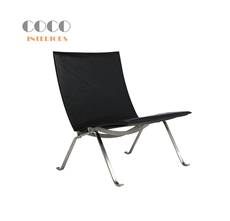 PK22椅简约经典休闲单椅实心不锈钢皮质沙发椅等候商务椅现代极简