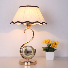 欧式静音带钟表台灯现代简欧温馨卧室床头灯创意时尚触摸调光灯具