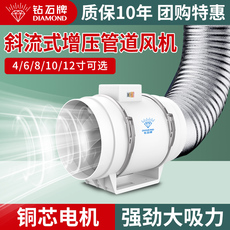 钻石牌管道风机强力换气扇卫生间工业抽风机斜流增压厨房排气风扇