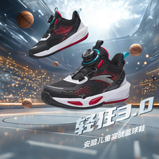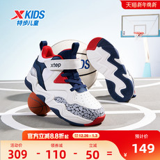 特步童鞋儿童篮球鞋旋钮扣密网男童鞋子新款耐磨球鞋运动鞋中大童