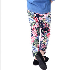 米奇丁当品牌女童装春季纯棉翠花长裤中国风儿童印花直筒裤子尾货