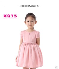米奇丁当童装2016夏装新款女童连衣裙中大儿童纯色短袖公主裙子潮