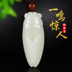 新疆和田玉羊脂白玉一鸣惊人玉蝉挂坠玉石籽料知了吊坠挂件男女