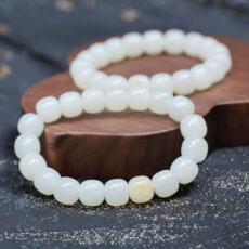 老料油膏体。新疆籽料和田玉羊脂白玉老型珠10乘9手链 配证书