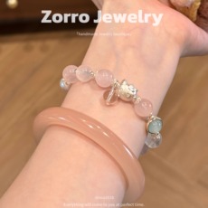 桃桃同款丨天然蜜桃粉手镯哈喽kitty白水晶手链女粉晶桃花