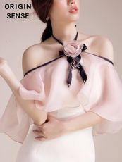 抹胸小性感蝴蝶结烫钻立体装饰公主粉色仙气欧根纱A字飘逸连衣裙