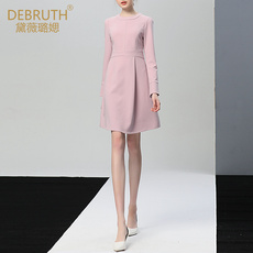 黛薇璐媤粉色圆领长袖公主连衣裙女2025秋装新款法式气质高腰A裙