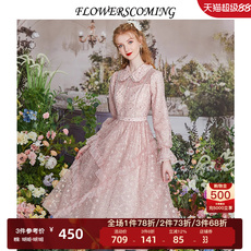 花儿开了2025秋季新款粉色优雅甜美公主裙娃娃领长袖短款连衣裙女