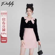 法式小香风娃娃领连衣裙女春季2025年新款粉色丝绒甜美a字公主裙