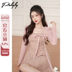 黛薇璐媤粉色小香风长袖公主连衣裙女2025秋新款法式气质收腰A裙